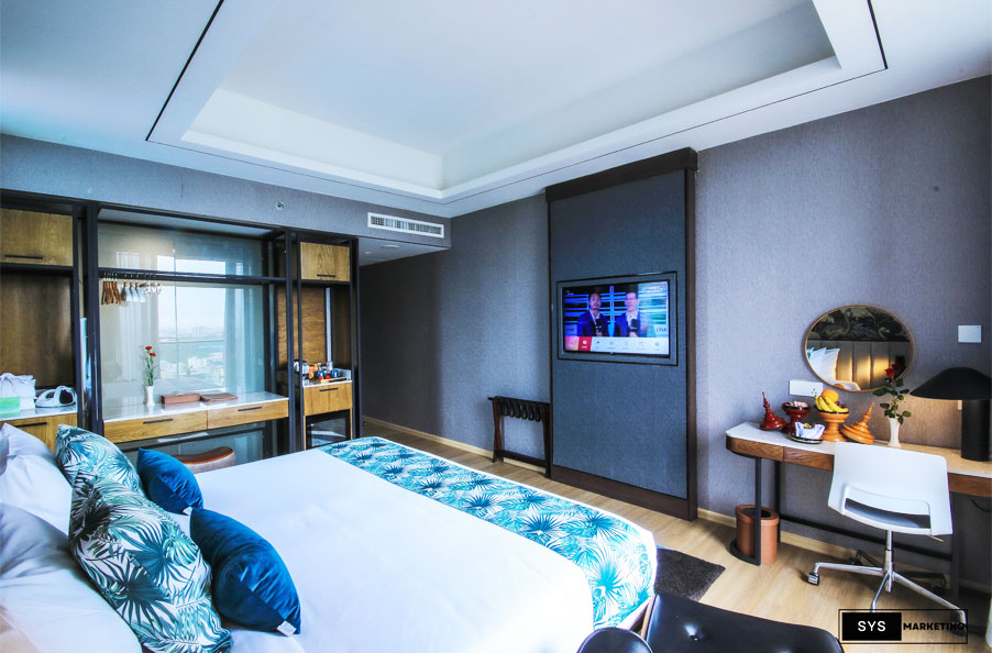 - Appointed with contemporary furnishing and cheerful pops of color, these rooms face the city or pagoda view with Balcony. Guests enjoy the fruit plate, 45-inch LCD television, room to room extension phone, mini bar, fruit basket, hot and cold shower, safety box, hair dryer, wardrobe, complimentary food and drink. Do not hesitate if you have question, contact me any time.